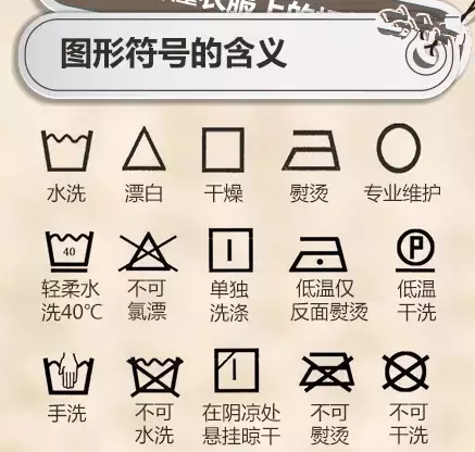 那買回來的衣服如何清洗、打理?吊牌上的那些圖形符號(hào)你是否油看得明白了,如果還不清楚可要看好下面這些解釋了。