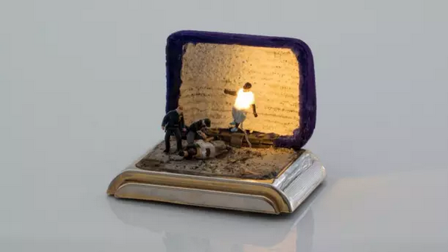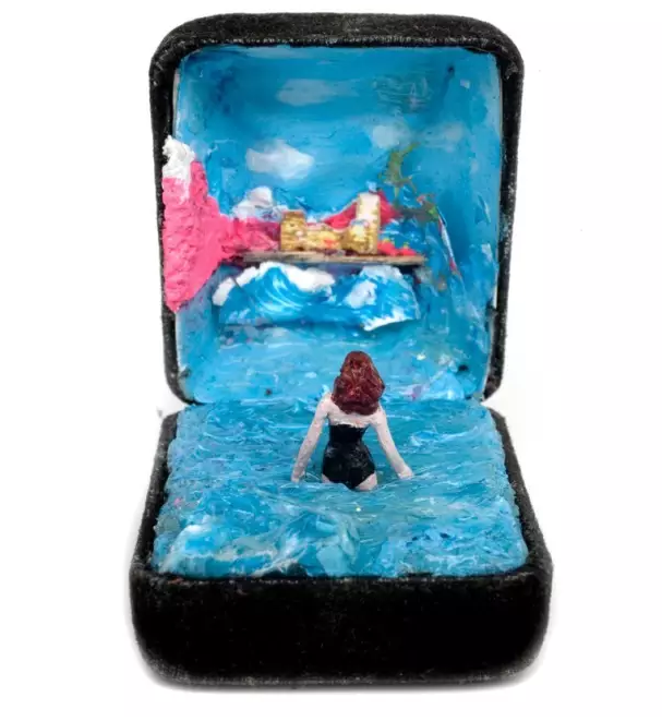 這是一位名叫Curtis Talwst Santiago 的藝術(shù)家的杰作,Talwst開始藝術(shù)創(chuàng)作是在2008年,那時(shí)他還是一位前途可期的音樂(lè)人,只是閑暇時(shí)會(huì)用繪畫和雕塑來(lái)抵抗溫哥華多雨的憂郁。一天,一個(gè)他經(jīng)常光顧的路邊小販拿出一個(gè)小首飾盒,想看Talwst能用它做點(diǎn)什么出來(lái)。打開這個(gè)首飾盒,讓Talwst實(shí)現(xiàn)了真正的跨界,他在首飾盒里繪制的微縮立體模型在藝術(shù)舞臺(tái)上獨(dú)放異彩。