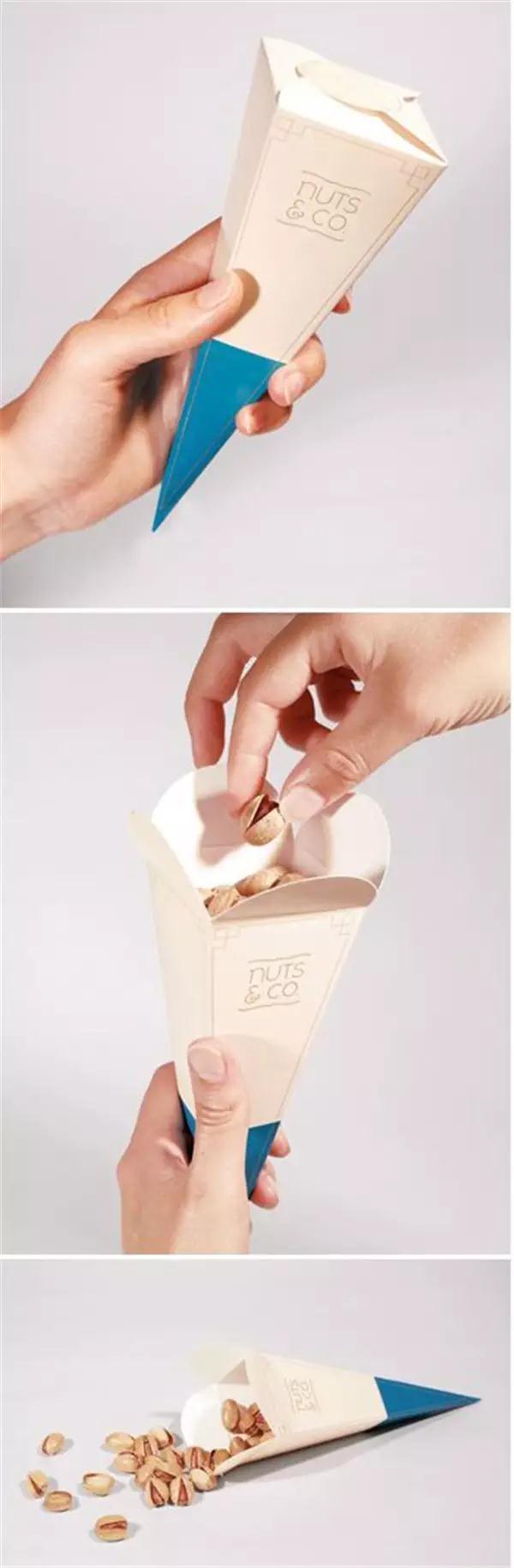 大冬天的來個(gè)冰欺凌涼爽一下?nonono,人家只是個(gè)會(huì)偽裝的堅(jiān)果罷了,這樣的包裝設(shè)計(jì)很適合拿在手里邊走邊吃,看到朋友還可以大方的賞ta一顆,小編小時(shí)候吃瓜子就是自己用紙張包成類似于這樣的形狀,然后將瓜子放里邊,開心時(shí)就賞一些給路過的小伙伴,別提有多得瑟了。