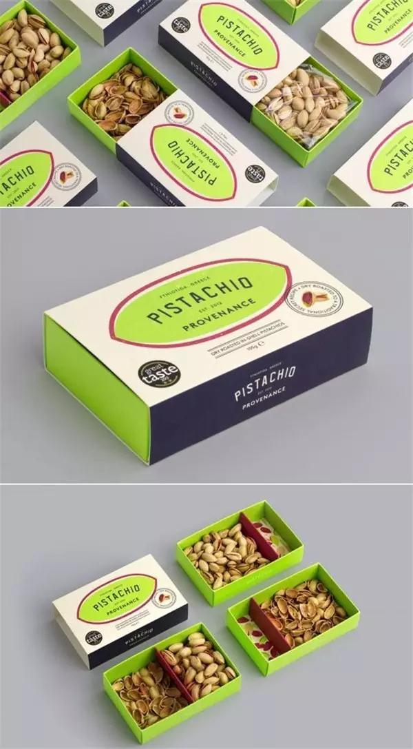 中國(guó)人講究的是一個(gè)好的寓意,所以開心果是必備的,人們都想吃了開心果之后接下來的一年都可以開開心心的。小編覺得開心果老貴了,但是常見的包裝都是透明塑料袋裝著的,感覺一點(diǎn)都不“高貴”,對(duì)不起那價(jià)格啊,但是如果是下面的這個(gè)包裝那就心里平衡些了,至少有一種高級(jí)感。