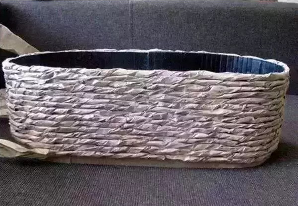 步驟4.逐圈點上膠水后粘在上面做好的長橢圓形盆子外面,這樣看起來這個花盆是不是變得有藝術(shù)感了許多呢?