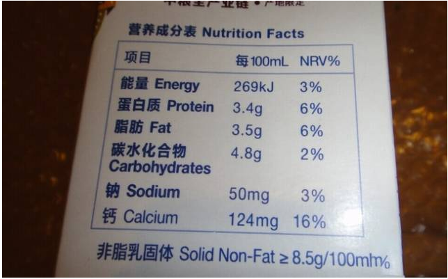 常見的營養(yǎng)成分表一般由營養(yǎng)素項目、含量值及占營養(yǎng)素參考值百分比(NRV%)三部分組成。營養(yǎng)素項目列出產(chǎn)品所包含的營養(yǎng)素的種類名稱,其中能量、三大能營養(yǎng)素(蛋白質、脂肪、碳水化合物)和鈉是必須明確的標出的部分,也就是常說的“1+4”(“1”指能量,“4”指三大產(chǎn)能營養(yǎng)素和鈉)。其它營養(yǎng)素可以由自由標識,比如奶制品往往還會標注“鈣”、高纖產(chǎn)品還會標注“膳食纖維”這一項。