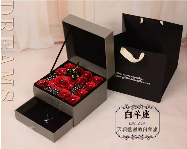 白羊座是天生果敢者,他們永遠(yuǎn)生機(jī)勃勃、激情盎然,他們熱情坦率、慷慨真誠(chéng)、堅(jiān)強(qiáng)勇敢,在生活中是個(gè)不拘小節(jié)之人,而他們的項(xiàng)鏈禮盒當(dāng)然要用最有熱情的火紅色玫瑰來(lái)點(diǎn)綴!